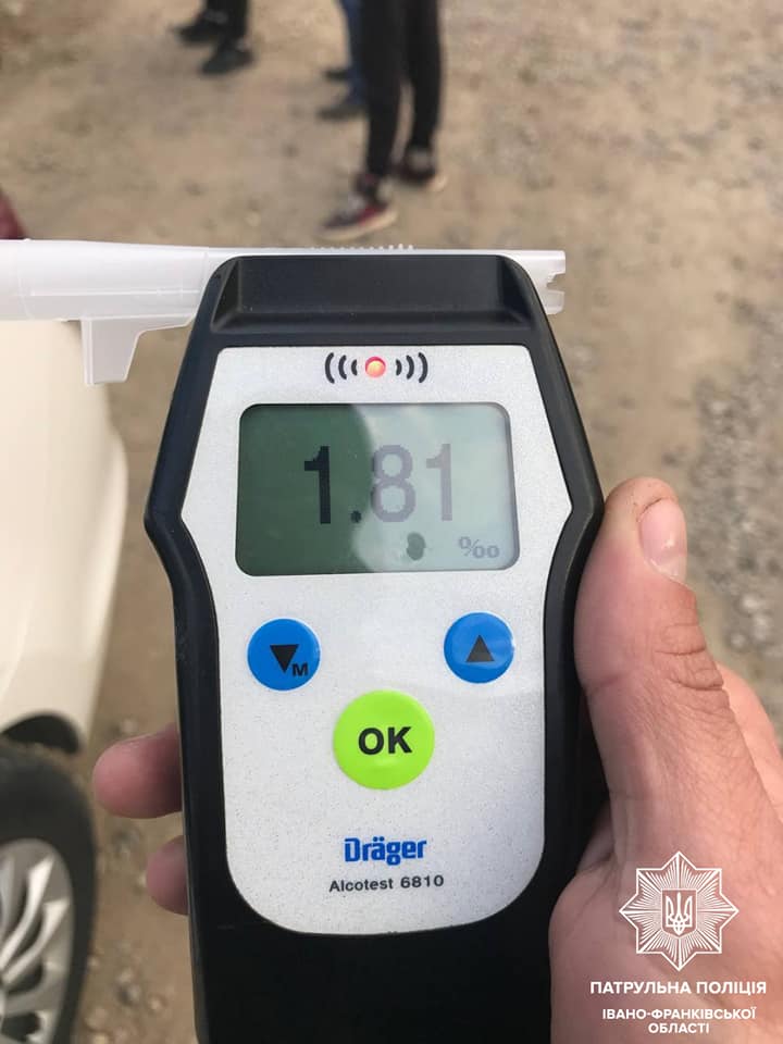 У керманича патрульні під час спілкування помітили ознаки алкогольного сп’яніння. Водій погодився пройти освідчення на стан сп’яніння. Результат 1.81 проміле алкоголю в крові.